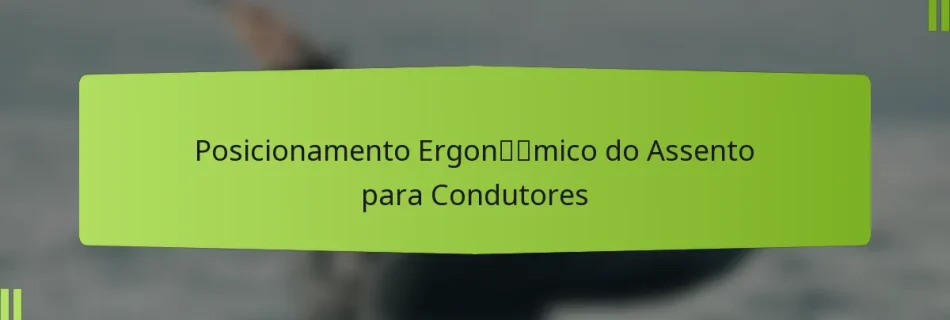 Para alcançar uma postura ideal, os condutores devem ajustar o seu assento de forma a conseguir alcançar confortavelmente os pedais sem esticar. O encosto deve suportar a curva natural da coluna, e a altura do assento deve permitir uma visão clara da estrada, mantendo os joelhos ligeiramente dobrados.