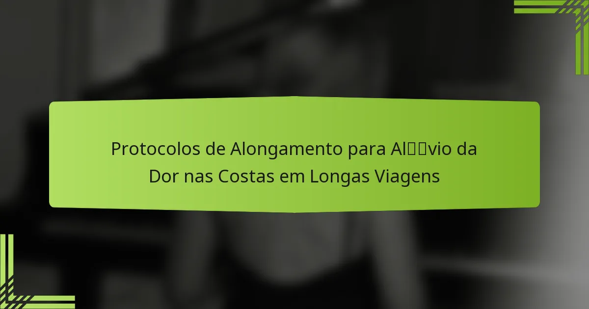 Longas viagens podem levar a dores nas costas devido a fatores como sentar-se por longos períodos e má postura. Implementar protocolos de alongamento eficazes pode aliviar significativamente o desconforto ao reduzir a tensão muscular e aumentar a flexibilidade. Ao incorporar uma variedade de alongamentos estáticos, dinâmicos e direcionados, os indivíduos podem personalizar sua abordagem para encontrar alívio ideal e prevenir dores futuras durante viagens prolongadas.